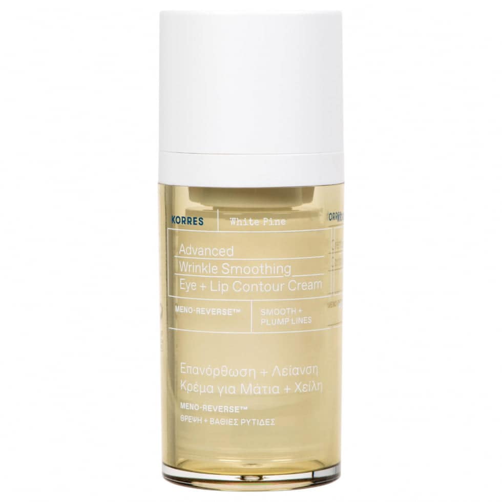 Η Korres Λευκή Πεύκη Επανόρθωση + Λείανση Κρέμα για Μάτια & Χείλη είναι μία θρεπτική κρέμα ολοκληρωμένης φροντίδας για το περίγραμμα ματιών και χειλιών, ειδικά σχεδιασμένη για γυναίκες μετά την εμμηνόπαυση.
