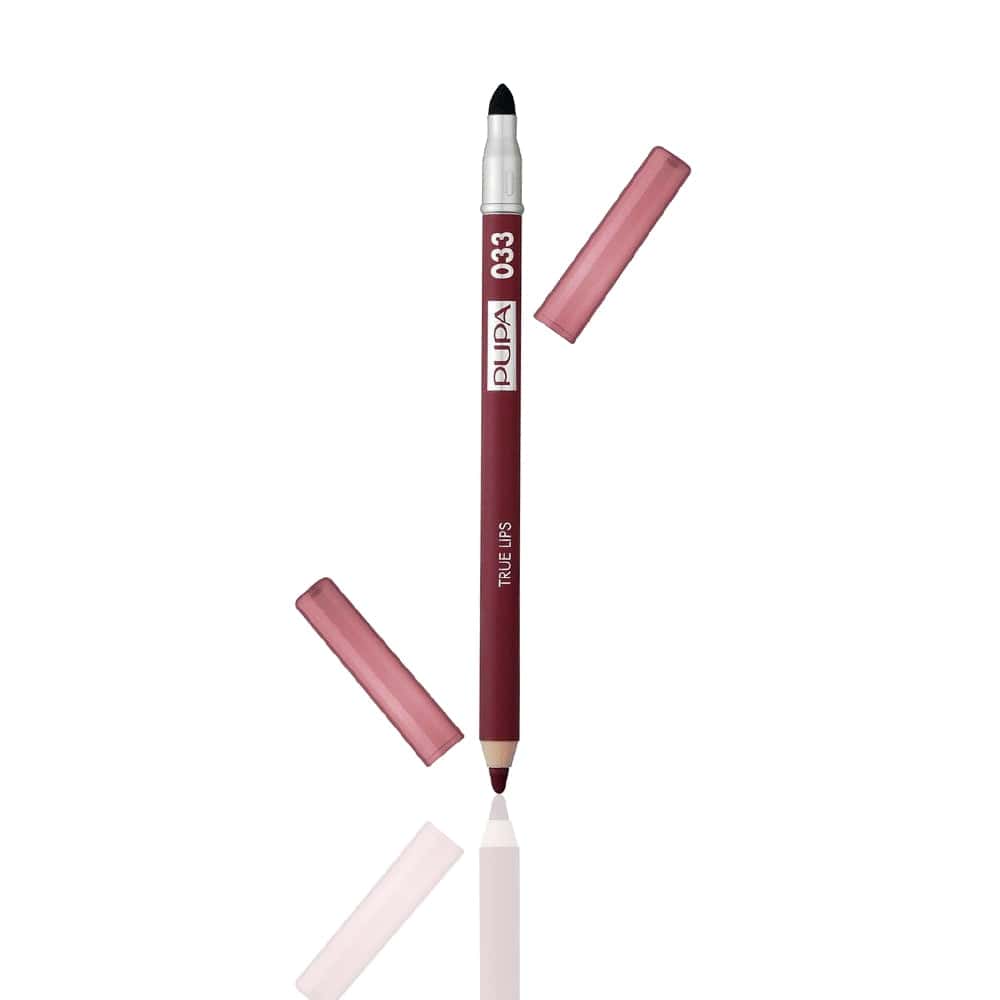 Μεταμορφώστε τα χείλη σας με το Pupa True Lips Pencil, προσφέροντας άψογο σχήμα και ορισμό με έντονο και πλούσιο χρώμα. Μοναδικής χρήσης: φοριέται μόνο του για ένα λεπτεπίλεπτο ματ αποτέλεσμα ή κάτω από το κραγιόν σας για μεγαλύτερη διάρκεια και δημιουργία αντίκτυπου φραγής. Η μύτη του μολυβιού είναι απαλή και εύκολη στη χρήση, ενώ το ενσωματωμένο σφουγγαράκι για ανάμειξη βοηθά στην ομοιόμορφη κατανομή του χρώματος. Η σύνθεσή του είναι κρεμώδης με υψηλή κάλυψη. Περιέχει βιταμίνη Ε και βιταμίνη C με αντιοξειδωτικές ιδιότητες, καθώς και λάδι σπόρου βαμβακιού για ενυδάτωση και εμολλύνση. Εφαρμόστε το μολύβι χειλιών ξεκινώντας από το κέντρο του άνω χείλους, περιγράφοντας το περίγραμμα με μια συνεχή λεπτή γραμμή. Επαναλάβετε στο κάτω χείλος, ξεκινώντας αυτή τη φορά από την έξω γωνία και τελειώνοντας στο κέντρο. Θολώστε τη γραμμή προς το εσωτερικό των χειλιών σας χρησιμοποιώντας το ενσωματωμένο εργαλείο ανάμιξης. Στη συνέχεια, εφαρμόστε ένα γυαλιστερό για φυσικό αποτέλεσμα ή ένα κραγιόν για πιο εκλεπτυσμένη όψη.