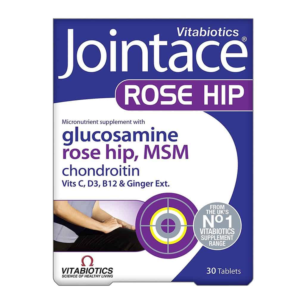 Το συμπλήρωμα διατροφής Jointace Rose Hip, MSM της Vitabiotics περιέχει ένα συνδιασμό θειικής γλυκοσαμίνης, MSM (methylsulfonylmethane) και εκχυλίσματος Rose Hip (άγριο τριαντάφυλλο) για την υγεία των αρθρώσεων.